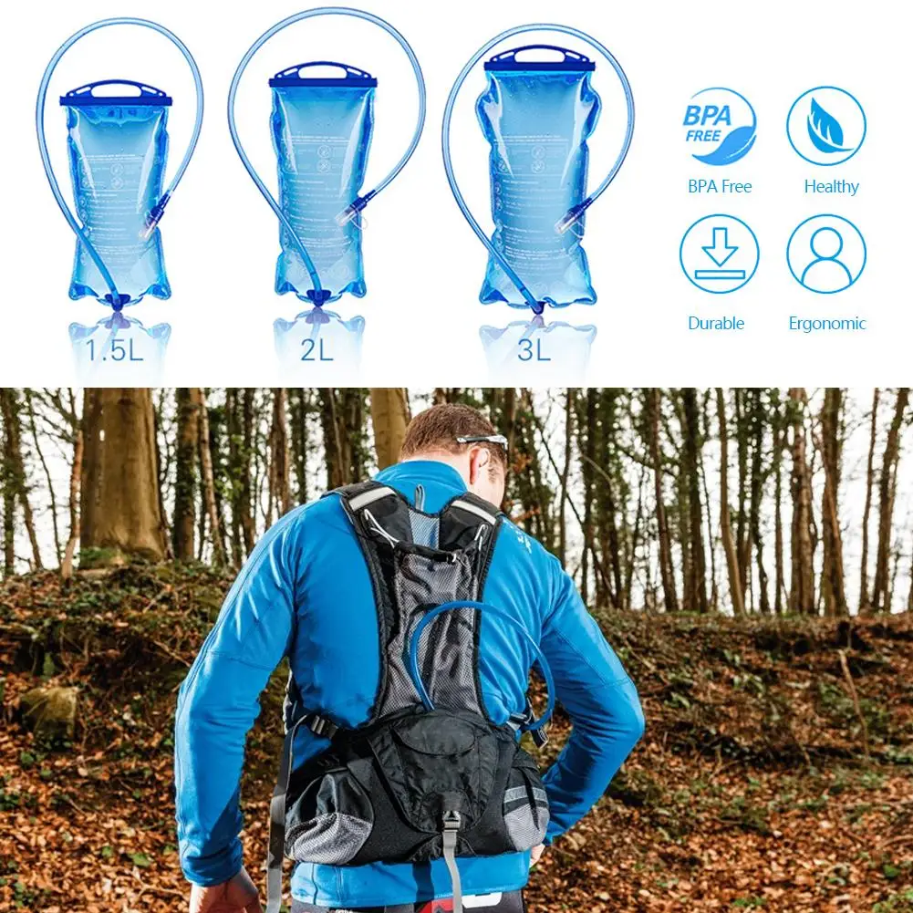 5、Portable Size: The hydration water bladder has 1.5L(7.1*14.1in), 2L(7.1*15.3in), 3L(7.8*16.7in), which can be compatible with most backpacks. It is ideal equipment for running, walking, hiking, mountain climbing, traveling and other outdoor activities.