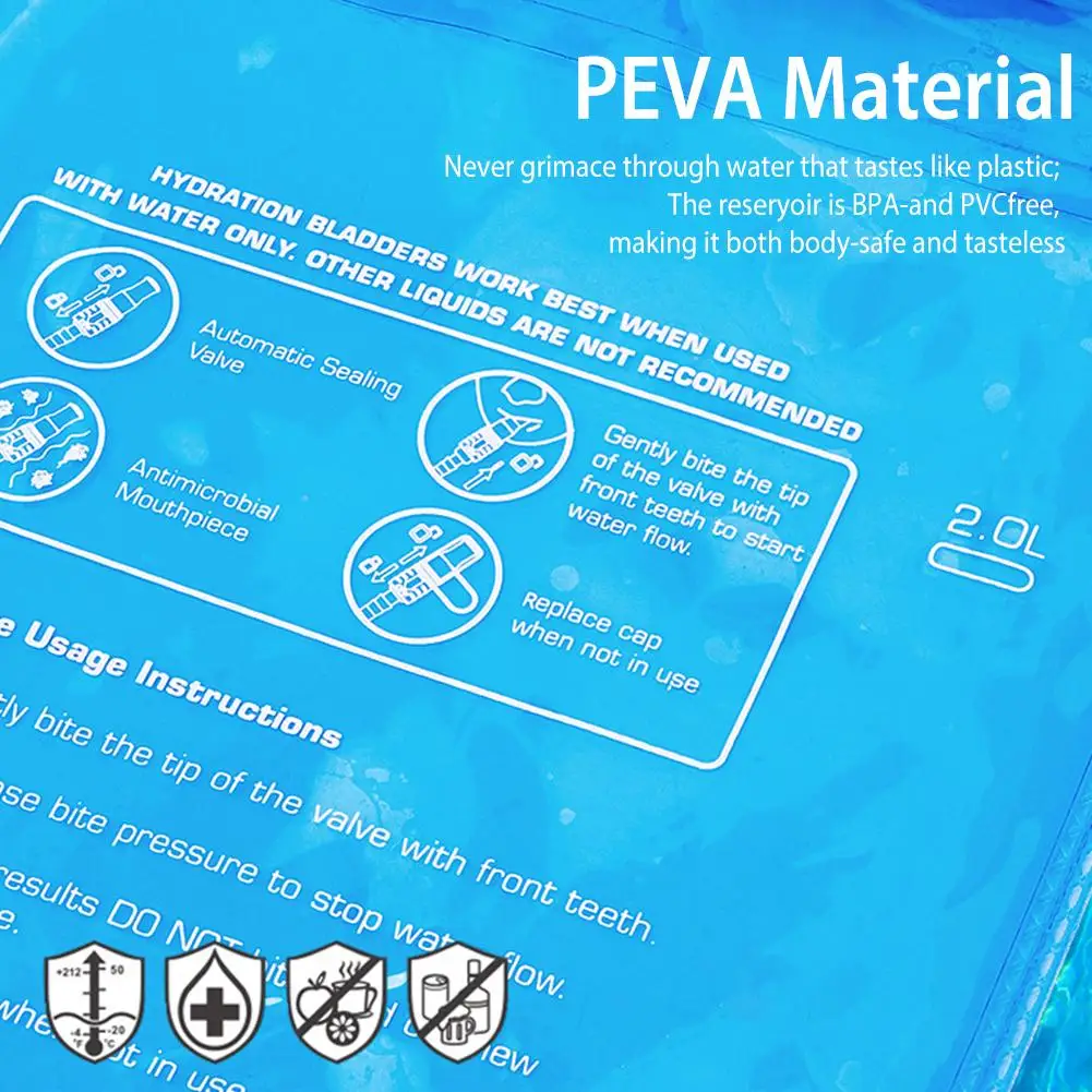 1、High-quality Material: The hydration bladder is made of high-quality PE and EVA material, equipped with TPU drinking water hose, wear-resistant, corrosion-resistant and no peculiar smell. It is an ideal water replenishment equipment for you to keep moisture when living outdoors.